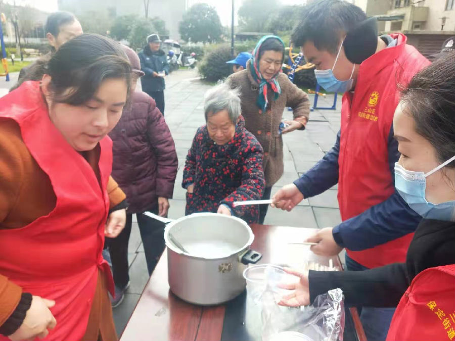 另一邊,公司黨員和村委會(huì)工作人員開始準(zhǔn)備湯圓,在猜燈謎游戲環(huán)節(jié)結(jié)束后,大家為小區(qū)居民送上了熱氣騰騰的湯圓,節(jié)日氛圍逐漸散溢開來。寒冷的天氣里,居民們共同品嘗湯圓的甜蜜,感受物業(yè)的暖心。