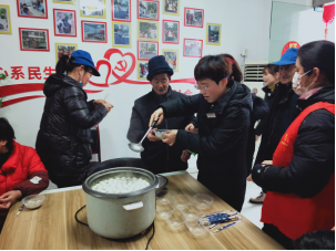 猜燈謎活動接近尾聲時,黨員、志愿者們拿出糯米面粉、湯圓餡等材料,挽起袖子,揉面團、放餡料、搓湯圓,為小區(qū)居民送上了一碗碗熱氣騰騰的湯圓。在整個活動中,一起聊著元宵節(jié)的來歷和各種習俗,大家對中華傳統節(jié)日的內涵又有了新的理解。