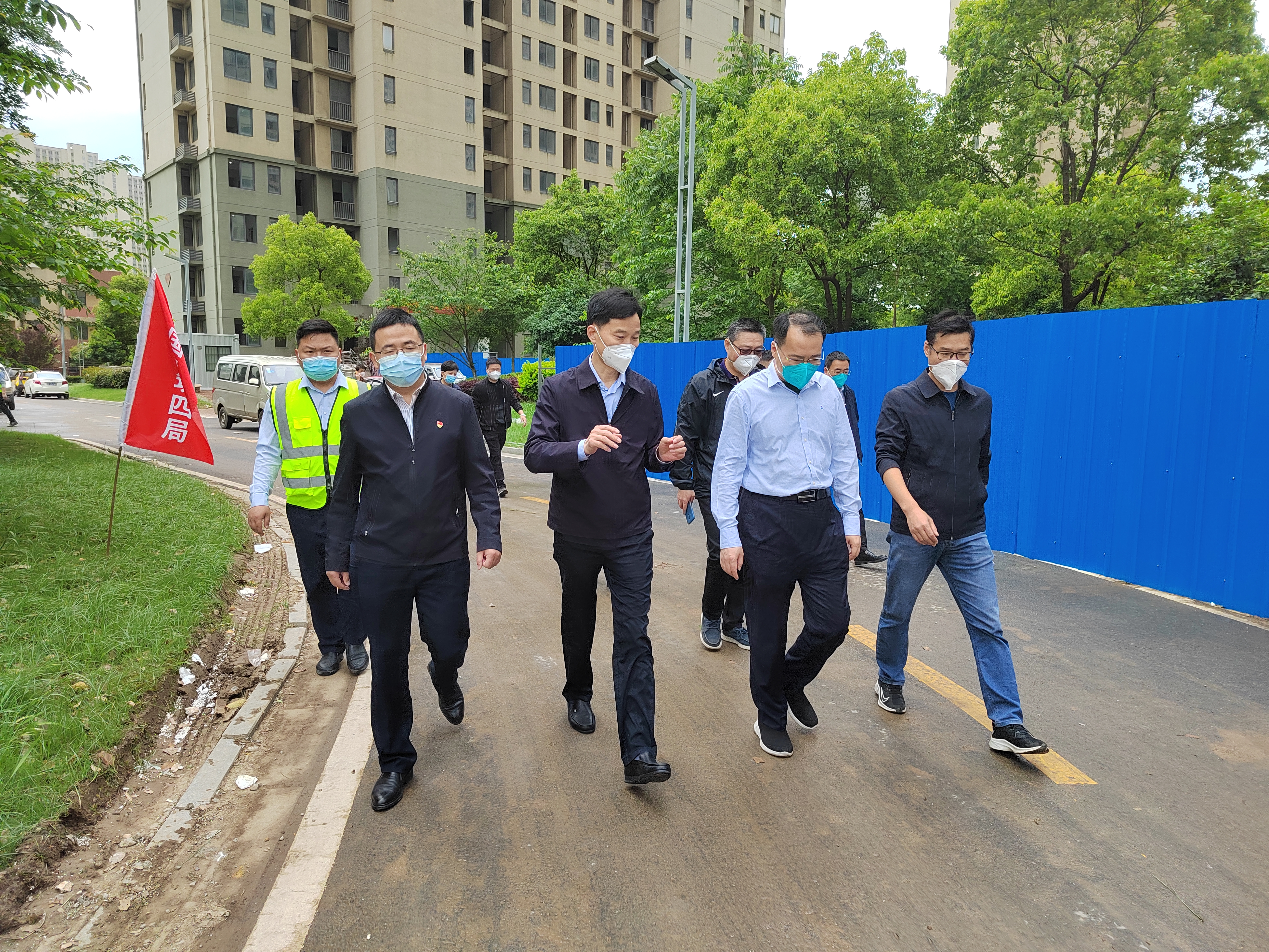 4月28日上午,市政府副市長蔡毅帶領(lǐng)市相關(guān)部門負(fù)責(zé)同志赴三山區(qū)星河灣公租房小區(qū)檢查健康驛站改造建設(shè)情況。集團(tuán)公司黨委書記、董事長沈世躍等陪同檢查。