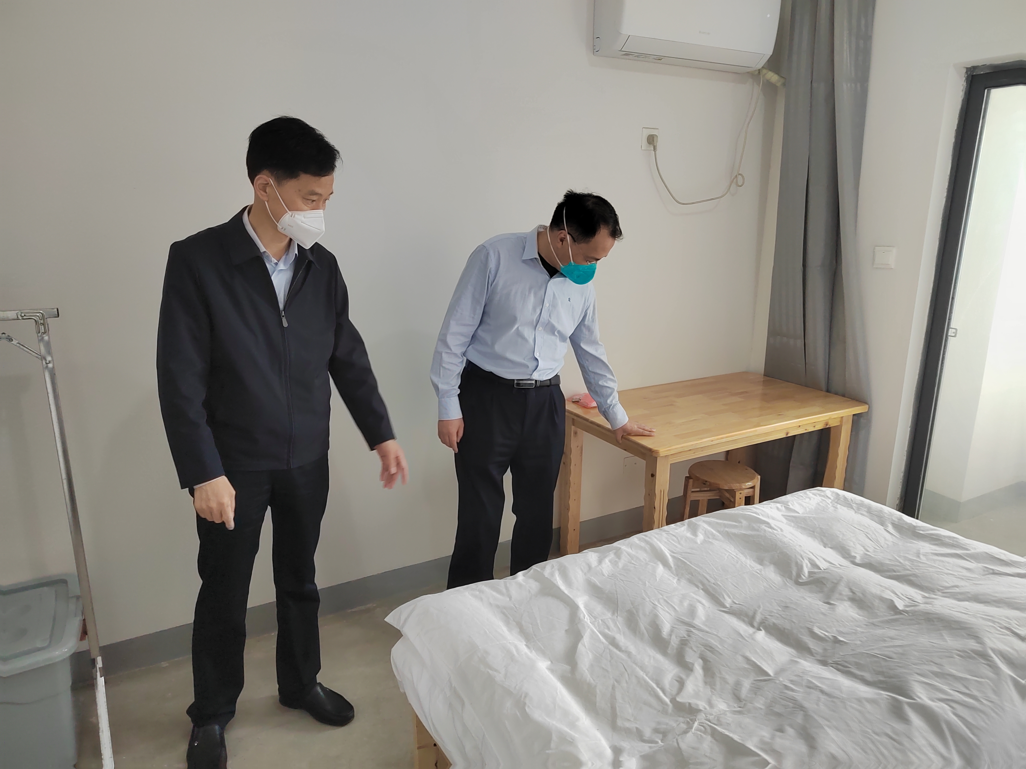 蔡毅副市長一行認(rèn)真聽取健康驛站改造建設(shè)情況介紹,詳細(xì)了解施工組織、安全、進(jìn)度等方面情況,實(shí)地查看完成改造樓棟的房間設(shè)施設(shè)備配套、環(huán)境衛(wèi)生等情況。了解到公司面對時間緊、人手少、任務(wù)重的情況,頂住壓力、晝夜奮戰(zhàn),在最短的時間內(nèi)交付2684套隔離房源,蔡市長表示充分的肯定。