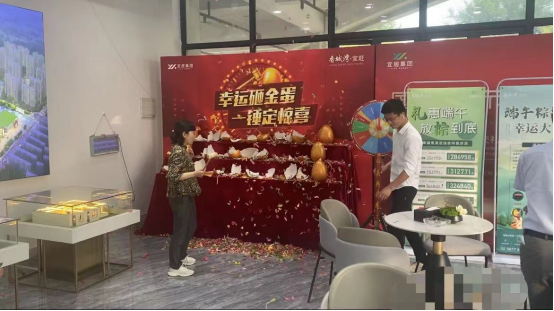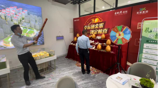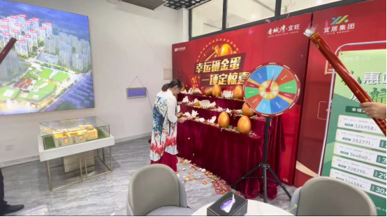 6月隨著氣溫的不斷升高,香城灣·宜旺營銷中心現(xiàn)場也是異?;鸨山徊粩?。眾多來訪客戶參與幸運大轉盤贏得活動獎品,把現(xiàn)場氛圍推向高潮,彩帶紛飛更增添了節(jié)日的喜悅氛圍。