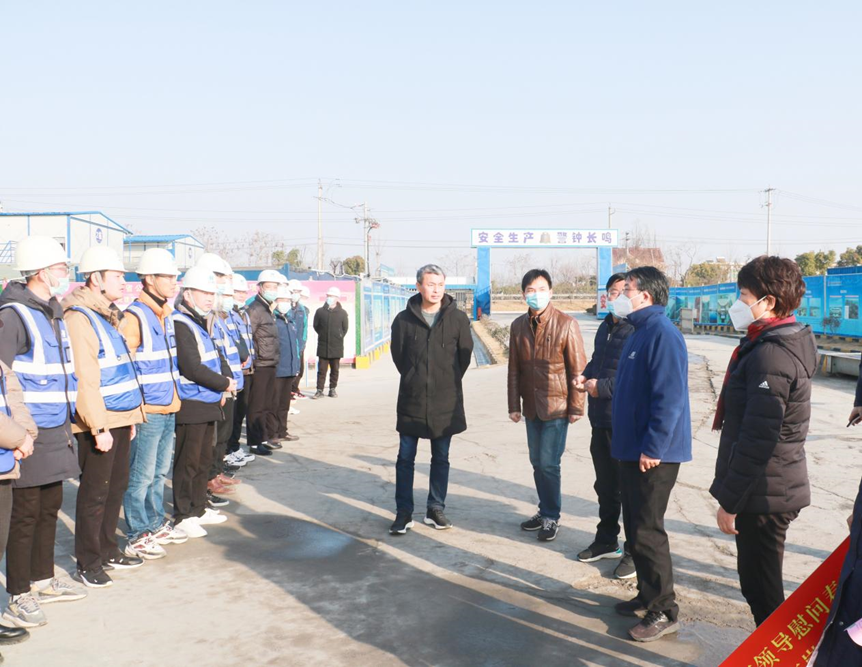 2023年1月19日上午,蕪湖市人大常委會主任丁祖榮帶隊赴安徽省公共衛(wèi)生臨床中心(蕪湖)項目現(xiàn)場看望慰問一線職工,項目建設(shè)單位、監(jiān)理單位、施工單位負責人員陪同參加。