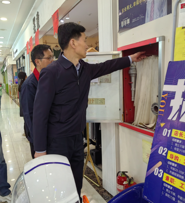 沈世躍深入香城灣沿街門店、商場超市、餐飲商鋪等,實(shí)地檢查查看消防通道暢通、消防水帶槍頭維保、滅火器配備、安全使用燃?xì)?、消防安全宣傳等落?shí)情況,現(xiàn)場演練消防水槍出水情況。他強(qiáng)調(diào),要進(jìn)一步壓實(shí)安全生產(chǎn)責(zé)任,認(rèn)真汲取近期火災(zāi)事故教訓(xùn),全面排查安全隱患,要重點(diǎn)排查擅自改變房屋結(jié)構(gòu)、液化氣使用、私拉電線、堆放易燃雜物等情況,針對排查出的隱患要明確整改責(zé)任部門、責(zé)任人員及時(shí)限,確保符合消防安全要求;要進(jìn)一步加強(qiáng)安全生產(chǎn)宣傳,明確告知房屋實(shí)際使用人的安全生產(chǎn)責(zé)任,提高安全生產(chǎn)意識,確保安全生產(chǎn)形勢平穩(wěn),確保人民群眾生命、財(cái)產(chǎn)安全。