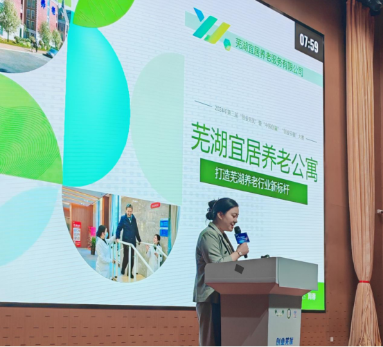 6月28日,由市人力資源和社會(huì)保障局、市發(fā)改委、市民政局、市衛(wèi)健委、市公共就業(yè)和人才服務(wù)中心等共同舉辦的第三屆“創(chuàng)業(yè)蕪優(yōu)”創(chuàng)新創(chuàng)業(yè)大賽暨“中國(guó)創(chuàng)翼”“創(chuàng)業(yè)安徽”大賽蕪湖市選拔賽在蕪湖科技產(chǎn)業(yè)園舉行。蕪湖宜居養(yǎng)老公寓院長(zhǎng)助理周蓉同志代表公司發(fā)表主旨演講并現(xiàn)場(chǎng)答辯,經(jīng)過(guò)激烈角逐,宜居養(yǎng)老公寓喜獲“銀發(fā)經(jīng)濟(jì)”賽道銀獎(jiǎng)。