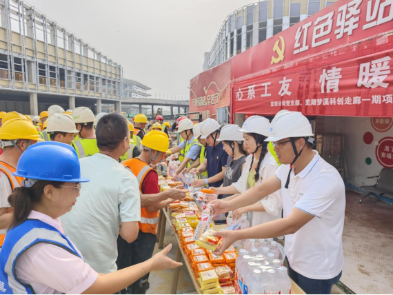 又是一年中秋時(shí),蕪湖夢(mèng)溪科創(chuàng)走廊項(xiàng)目現(xiàn)場(chǎng)仍是一幅熱火朝天緊張忙碌的場(chǎng)景。為了把對(duì)項(xiàng)目一線的關(guān)懷落到實(shí)處,扎實(shí)開(kāi)展“我為農(nóng)民工辦實(shí)事”系列活動(dòng),9月13日上午,宜創(chuàng)公司黨支部聯(lián)合夢(mèng)溪科創(chuàng)走廊項(xiàng)目黨支部開(kāi)展中秋節(jié)前慰問(wèn),向工人們發(fā)放了月餅、飲用水等慰問(wèn)品。
