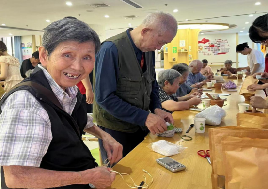 活動伊始,黨員代表們向羅蘭養(yǎng)老公寓入住的退休教師長者們致以節(jié)日的問候,共同觀看了習(xí)近平總書記在全國教育大會上發(fā)表的重要講話。隨后,徽商銀行長江路支行黨支部的黨員們表演了古詩詞朗誦《師說》,金暉公司黨支部的黨員講述了習(xí)近平總書記尊師重教的《十個暖心故事》,革命先輩將教書育人的革命火種具化為救國圖存實際行動的黨史故事《毛澤東:要做人民的先生,先做人民的學(xué)生》《鄧穎超:要我選擇職業(yè),我還是選擇當(dāng)老師》。公寓退休教師代表陳德厚爺爺以《躬身教壇,強(qiáng)國有我》為主題,講述年輕時為教育事業(yè)辛勤奉獻(xiàn)的經(jīng)歷,鼓勵活動現(xiàn)場的黨員們堅定職業(yè)理想和信念,為強(qiáng)國復(fù)興貢獻(xiàn)自身的力量。“香沁師恩”中草藥香囊手工制作環(huán)節(jié),志愿者和長者們共同制作手工香囊,幫助長者們安神助眠、寧心解郁。