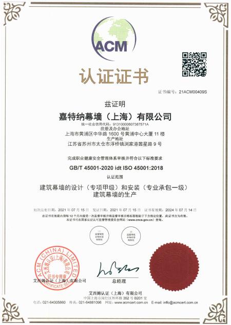 受疫情影響,全球經(jīng)濟(jì)按下“暫停鍵”。數(shù)據(jù)顯示,我國(guó)處于全球供需產(chǎn)業(yè)鏈條中游位置,將近40%的進(jìn)口領(lǐng)域可能會(huì)受到更大影響。在這種情況下,嘉特納幕墻(上海)有限公司順利取得ISO三體系認(rèn)證證書(shū)。嘉特納幕墻(上海)有限公司急需通過(guò)不斷的質(zhì)量環(huán)境和職業(yè)健康安全的優(yōu)化過(guò)程,獲得增長(zhǎng)。嘉特納幕墻(上海)有限公司是一家專業(yè)從事幕墻工程施工企業(yè),嘉特納幕墻(上海)有限公司位于中國(guó)上海市黃埔區(qū)中華路1600號(hào)黃埔中心大廈11樓,加工工廠位于中國(guó)江蘇省蘇州太倉(cāng)市浮橋鎮(zhèn)瀏家港茜星路9號(hào)。公司提供建筑幕墻及其相關(guān)產(chǎn)品的設(shè)計(jì),生產(chǎn),加工和安裝的綜合服務(wù)。